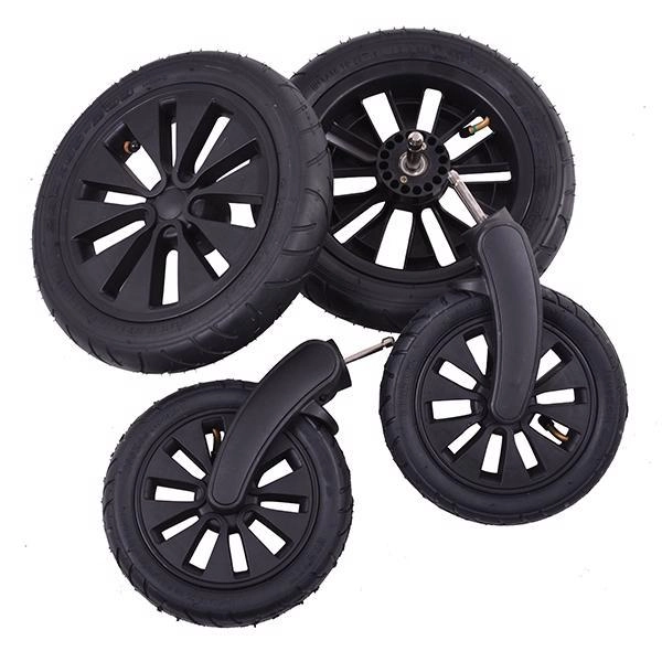 Praktische set van vier luchtbanden voor de PETITE&MARS Street+ en Street2 kinderwagens met aanzienlijk betere vering en stabiliteit. Grotere achterwielen met een diameter van 29 cm en wendbare voorwielen met een diameter van 20 cm kunnen overweg met klinkers, stoepranden en bospaden, waardoor jullie wandelingen comfortabeler worden voor jou en je kind.