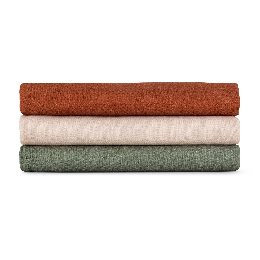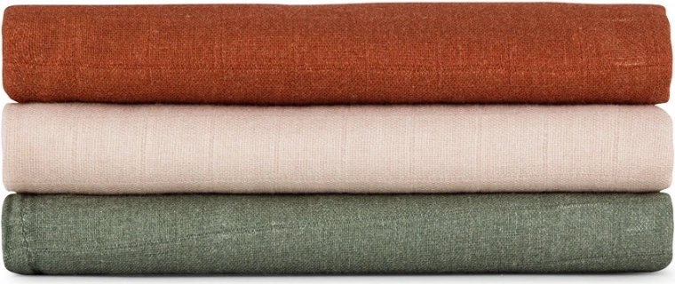 De veelzijdigheid is thuis en onderweg een plus: als luier, handdoekje, dekentje, inbakerdoek of doek voor het boertje laten. Mousseline is luchtig, geurresistent en dankzij de thermoregulatie heerlijk koel in de zomer en warm in de winter. De elegante Earth Tones zijn gemakkelijk te combineren met de babyuitzet.