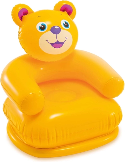 De opblaasbare kinderfauteuil Intex Vrolijke dieren combineert speelsheid met comfort. De felle kleuren en sympathieke motieven van een beertje of tijgertje vallen meteen in de smaak. De stoel is licht, makkelijk mee te nemen en dankzij het gladde vinyl oppervlak ook eenvoudig af te wassen – ideaal voor de kinderkamer, speelruimte en onderweg.
