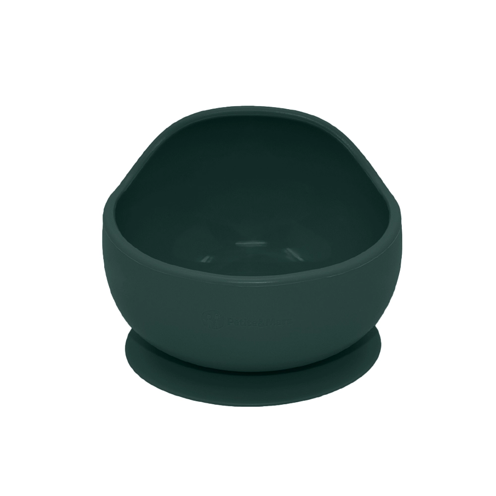 Praktische siliconen eetset in de tint Misty Green voor kinderen vanaf 6 maanden, inclusief kom met zuignap en ergonomisch bestek. Voedselveilige siliconen zonder BPA, sterke hechting aan het oppervlak en zachte, veilige randen ondersteunen zelfstandig eten zonder onnodige rommel.