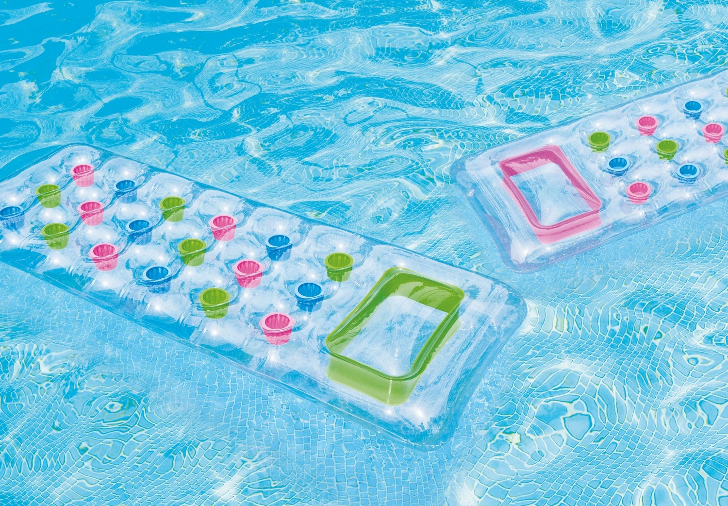 De stijlvolle roze opblaasbare lounger van INTEX is ideaal voor ontspanning in je zwembad of aan zee. Dankzij het transparante kijkvenster kun je onder het wateroppervlak kijken, terwijl het geïntegreerde kussen hoofdonsteuning en maximaal comfort biedt tijdens het luieren.