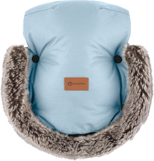 De PETITE&MARS winterset combineert de universele voetenzak Arctic 4-in-1 en Furry-handschoenen in de bijpassende kleur Sky Whisper. De voetenzak is extra lang (tot 110 cm), zacht gewatteerd met een warm fleecevoering, heeft een waterdicht en winddicht oppervlak met BIONIC-FINISH ECO en een praktische voorrits voor gemakkelijke toegang tot het kind. Koorden vormen een warme capuchon, de afneembare bontkraag beschermt tegen de wind en de antislip achterkant (ABS) houdt de voetenzak op zijn plaats.