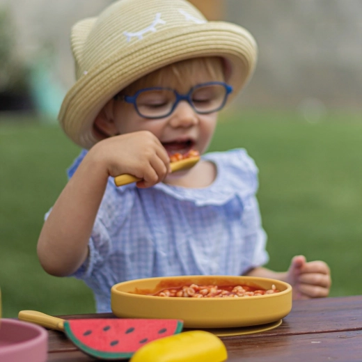 De stevige zuignap houdt het bord op tafel of op de kinderstoel op zijn plaats, zodat het tijdens het eten niet verschuift of omvalt. Ideaal voor de eerste stapjes naar zelfstandig eten.