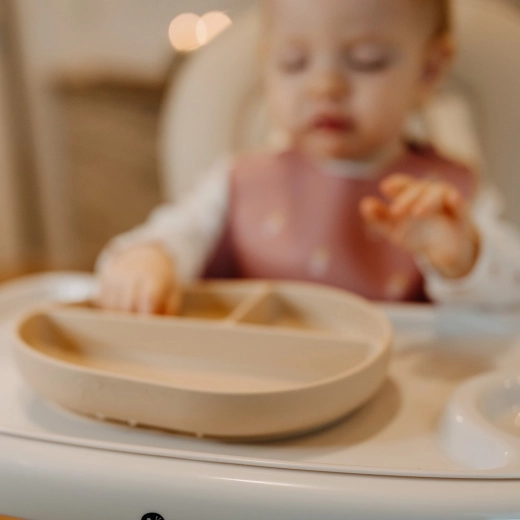 Het bord hecht stevig aan tafel of blad van de kinderstoel, zodat het tijdens het voeren niet wegglijdt. Ideaal voor zelfstandig eten zonder onnodige rommel.