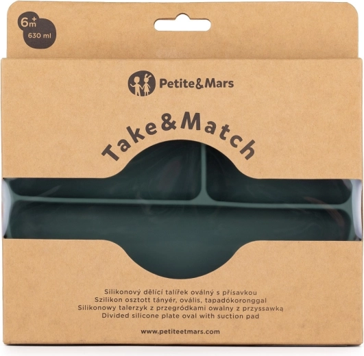 Ontdek het ovale verdeelde bord van PETITE&MARS uit de TAKE&MATCH-serie, dat kinderen helpt bij de eerste stapjes naar zelfstandig tafelen. Drie ruime secties houden het eten overzichtelijk gescheiden, de ovale vorm biedt extra ruimte en de sterke zuignap houdt het bord stevig op tafel of op het blad van de kinderstoel.