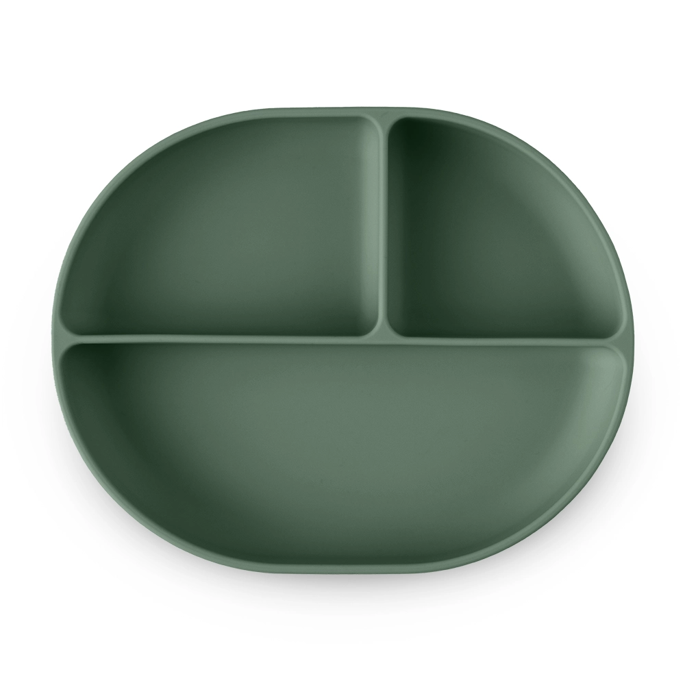 Praktisch kinderbord van voedselveilig silicone met drie vakken en een sterke antislip-zuignap voor veilig zelfstandig eten. Vrij van BPA, geschikt voor magnetron, vaatwasser en voor bewaren in de koelkast. Het ergonomische ontwerp met afgeronde randen maakt opscheppen makkelijker en ondersteunt de ontwikkeling van de fijne motoriek vanaf 6 maanden.