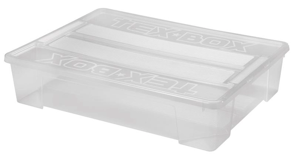 Ruime kunststof opbergbox HEIDRUN TexBox 60 l met praktisch deksel houdt je spullen schoon en veilig. Dankzij de transparante uitvoering heb je altijd zicht op de inhoud, of je de box nu gebruikt in huis, onder het bed, in de garage, werkplaats of op kantoor. Beschermt betrouwbaar tegen stof, vocht en beschadiging en is ideaal voor kleding, speelgoed, dekbedden en seizoensaccessoires.