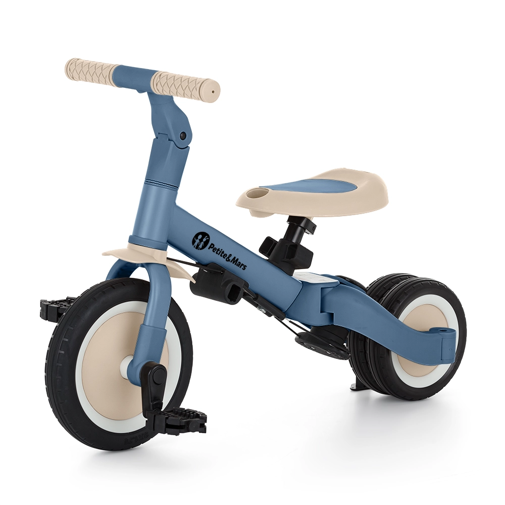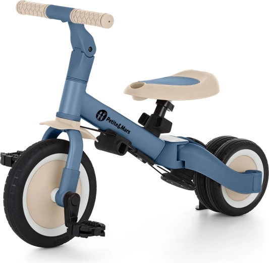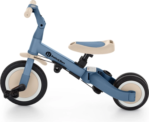 De multifunctionele driewieler PETITE&MARS Turbo Ocean Blue groeit met je kind mee vanaf de eerste ritjes tot zelfstandig fietsen met pedalen. Dankzij het doordachte ombouwsysteem biedt hij maar liefst 5 modi op basis van leeftijd en vaardigheden. Van geduwde driewieler via loop-/balansfiets tot klassieke fiets – altijd met de stabiliteit en het comfort die kleine rijders nodig hebben.