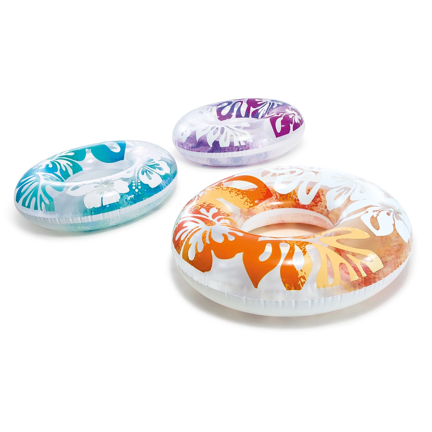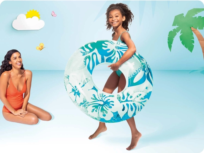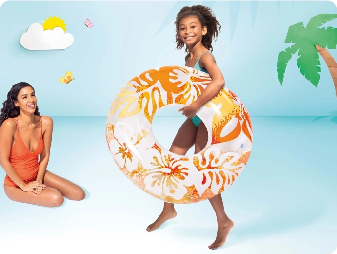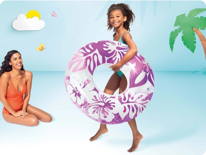 De INTEX Hawaï opblaasring valt op door helder vinyl met een tropische bloemenprint in aantrekkelijke kleuren. Ideaal om te relaxen op het wateroppervlak én voor speels waterplezier. Dankzij de hoogwaardige afwerking van stevig PVC is de ring bestand tegen kleine schaafjes en klaar voor een hele zomer vol fun.