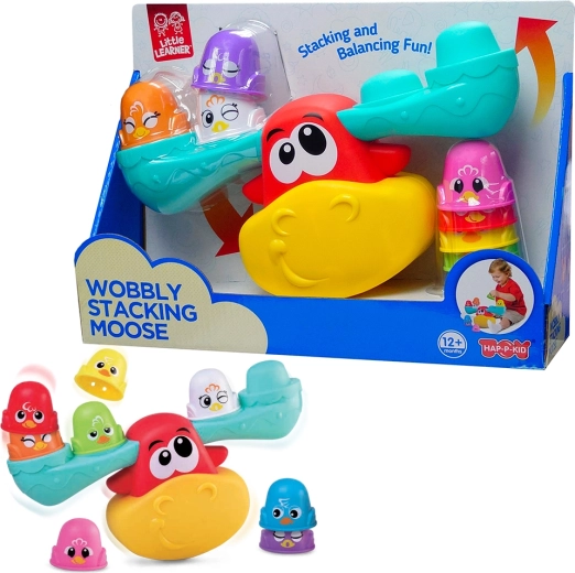 De balancerende eland is interactief speelgoed dat kinderen aanzet tot het ontdekken van evenwicht en geduld. Op de geweien van de eland worden kleurrijke bekertjes-vogeltjes geplaatst, met als doel een stabiel geheel te creëren zonder om te vallen. Plezier gaat zo hand in hand met leren en kinderen oefenen spelenderwijs hun oog-handcoördinatie.