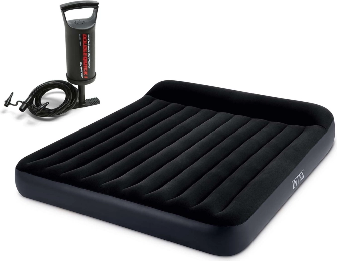 Geniet van een comfortabele slaap, thuis en onderweg, met het INTEX luchtbed van 203 × 183 × 25 cm. Dankzij de technologieën Fiber-Tech en Dura-Beam biedt het matras een hoge duurzaamheid, stabiele ondersteuning en een comfortabel oppervlak van zacht velours. In de verpakking zit een krachtige handzuigerpomp en een zelfklevende reparatiepatch.