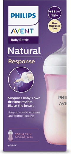 Zoek je een fles die natuurlijk aansluit op borstvoeding? Philips Avent Natural Response laat je baby zuigen, slikken en ademen in een natuurlijk ritme. De unieke speen geeft alleen melk vrij wanneer je kindje actief drinkt, waardoor de stroom stopt zodra je baby even wil pauzeren. Het resultaat is comfortabel voeden zonder onnodig druppelen.