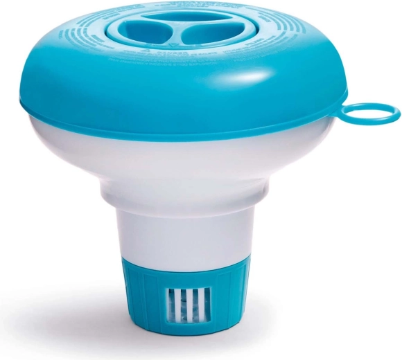 De drijvende doseerder met instelbare openingen laat je de afgifte van chloor precies regelen voor optimale desinfectie zonder risico op overdosering.