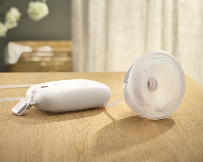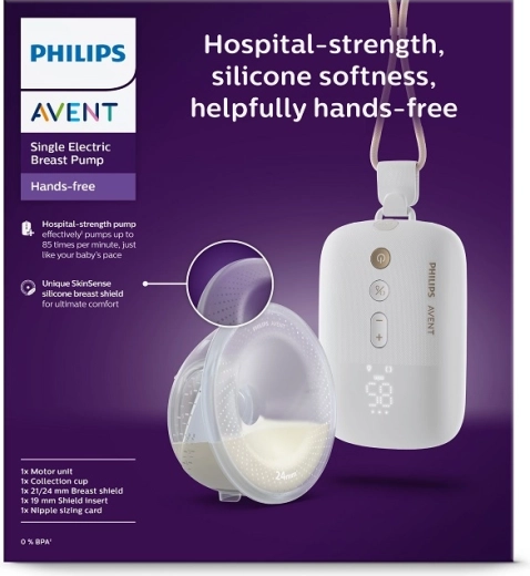 Philips Avent Hands‑Free Premium Plus biedt vrijheid bij het voeden en kolven. Dankzij de lichte, volledig transparante beker heb je continu zicht op de melkstroom, terwijl de slimme motor werkt in een ritme dat lijkt op het zuigen van een baby voor zacht en doeltreffend kolven. De stille, door ziekenhuistechnologie geïnspireerde werking zorgt voor discreet gebruik thuis en onderweg.