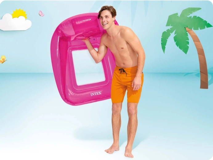 De roze opblaasbare stoel van Intex is ideaal voor rustig dobberen op meren, in zwembaden en aan zee. De ergonomische rugleuning met mesh zitting biedt aangenaam comfort en waterdoorstroming voor verkoeling op hete dagen. Twee afzonderlijke luchtkamers verhogen de stabiliteit en veiligheid tijdens het gebruik.