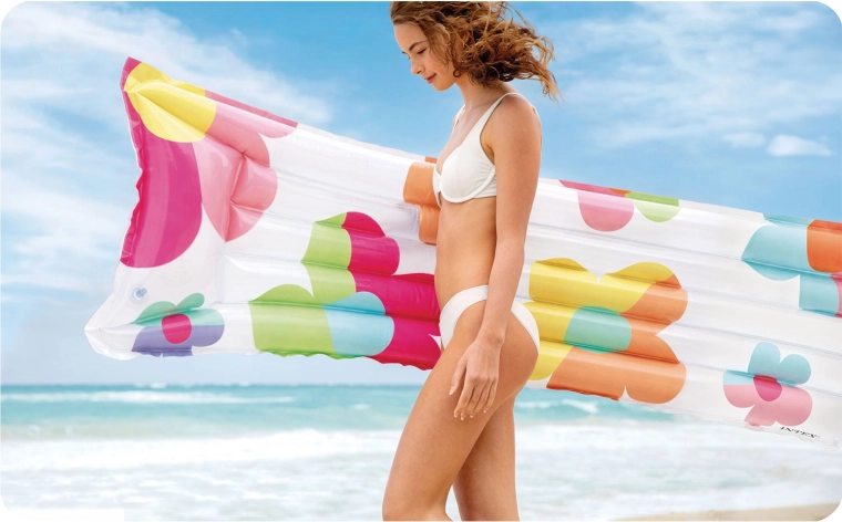 Het opblaasbare INTEX‑luchtbed met vrolijk bloemenpatroon is de perfecte keuze voor ontspanning op het wateroppervlak. Dankzij het geïntegreerde kussen biedt het prettige hoofdondersteuning, terwijl de meerkamer I‑beam constructie stabiliteit en comfort tijdens het liggen garandeert.
