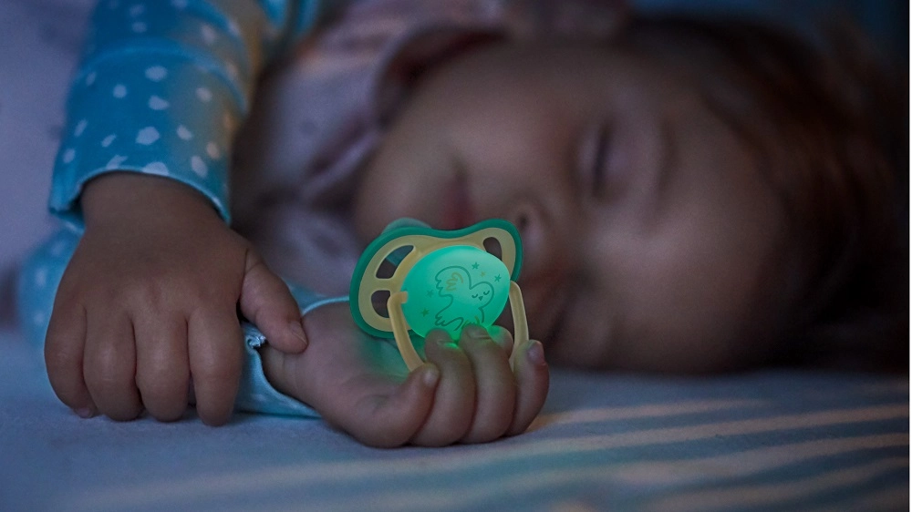 Het lichtgevende middendeel van de fopspeen maakt het mogelijk deze ook ’s nachts snel terug te vinden, zonder de slaap van je baby of jezelf te verstoren.