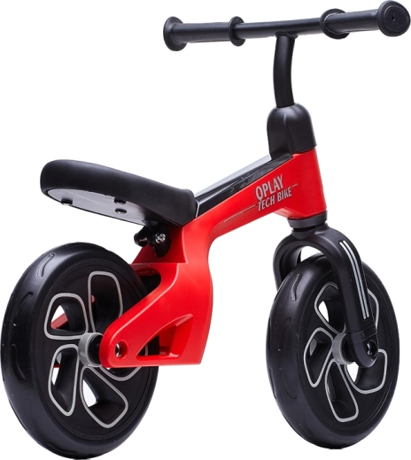 De Qplay Tech Red is een moderne loopfiets met een gestroomlijnd frame dat de luchtweerstand vermindert en kinderen helpt soepel te rijden. De brede, lichte EVA-banden zijn onderhoudsvrij en zorgen voor stille en stabiele prestaties. De verstelbare hoogte van zadel en stuur laat de fiets meegroeien met het kind, terwijl de stuurbegrenzing de veiligheid bij het manoeuvreren verhoogt.