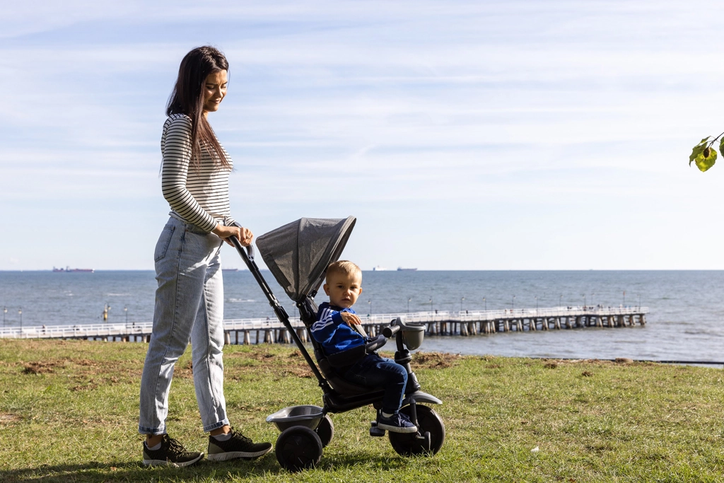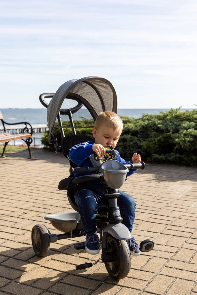 De Qplay Cosy 4-in-1 driewieler is ontworpen voor veilige en comfortabele ritjes van peuter tot kleuter. Dankzij slimme oplossingen – in hoogte verstelbare ouderduwstang, 5-puntsgordel, inklapbare centrale voetsteun en EVA-wielen – rijdt hij soepel over stoepen en parkpaden, terwijl je kind veilig en comfortabel blijft onder de kap met UPF30-bescherming.