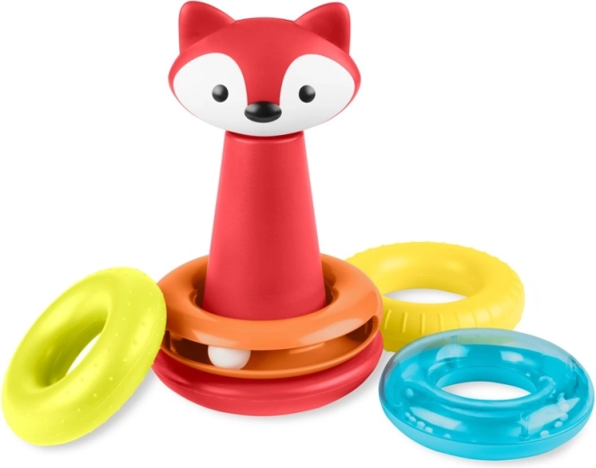 De leuke stapelpiramide met een schattige vos van Skip Hop stimuleert de fijne motoriek, oog-handcoördinatie en zintuiglijke ontwikkeling. Kinderen vanaf 6 maanden kunnen stapelen, sorteren en rammelen met vier kleurrijke ringen, texturen ontdekken en oorzaak en gevolg verkennen dankzij de kraaltjes en de wiebelende basis.