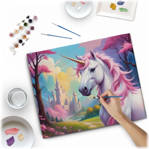 Maak je eigen stralende schilderij met een eenhoornmotief en geniet van een ontspannende creatieve ervaring. Dankzij de voorbedrukte en genummerde vlakken hoef je alleen de kleur aan het nummer toe te wijzen en stap voor stap de vakjes in te vullen – het resultaat verandert voor je ogen in een voltooid kunstwerk.