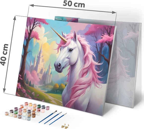 Ontdek de magie van creativiteit met de set schilderen op nummer in het formaat 40 × 50 cm. Het motief van een eenhoorn op hoogwaardig canvas op frame is klaar om te schilderen. In de set vind je 30 dekkende acrylverven, 3 gratis penselen in verschillende maten en haakjes om op te hangen. De gekleurde ondergrond met een subtiel patroon maakt schilderen eenvoudig, ook voor beginners, en garandeert een prachtig, intens resultaat.