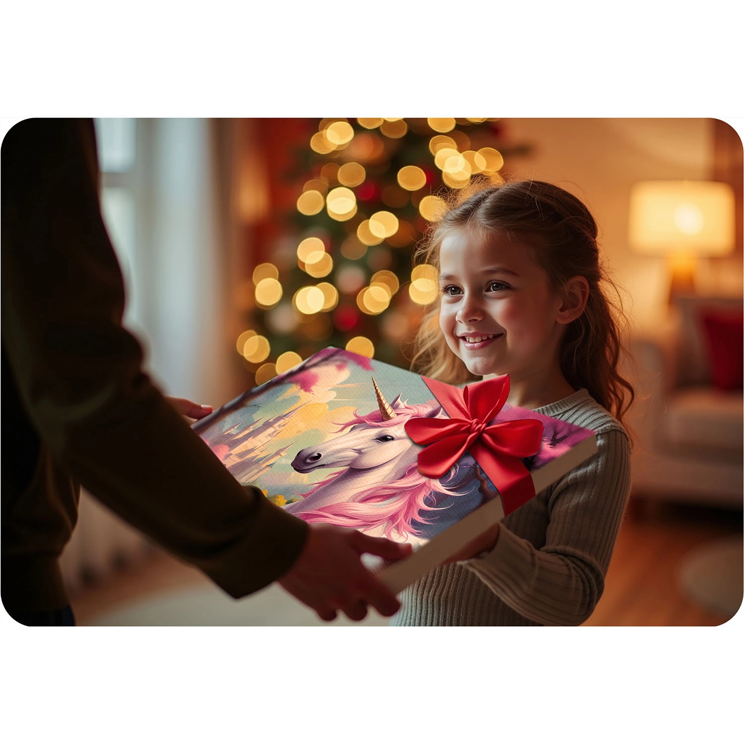 Het eenhoornmotief maakt zowel jong als oud blij. Het voltooide schilderij is een betoverende decoratie en de set zelf is een ideaal cadeau voor Kerstmis of een verjaardag.