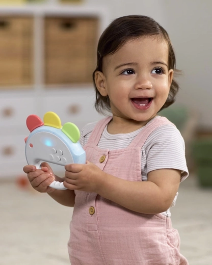 Dankzij de transparante, gemakkelijk vast te pakken ring is het speeltje perfect voor kleine handjes. Het indrukken van de “blaadjes” start melodieën, tonen of kuikengeluiden en bij schudden worden ritmische effecten toegevoegd. Een geweldige keuze voor samen spelen of zelfstandig muziek ontdekken.