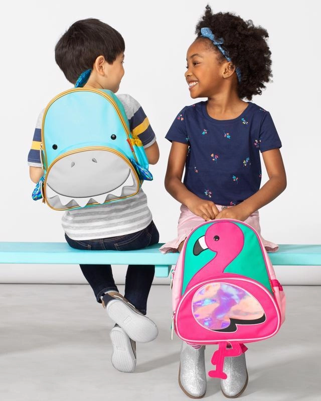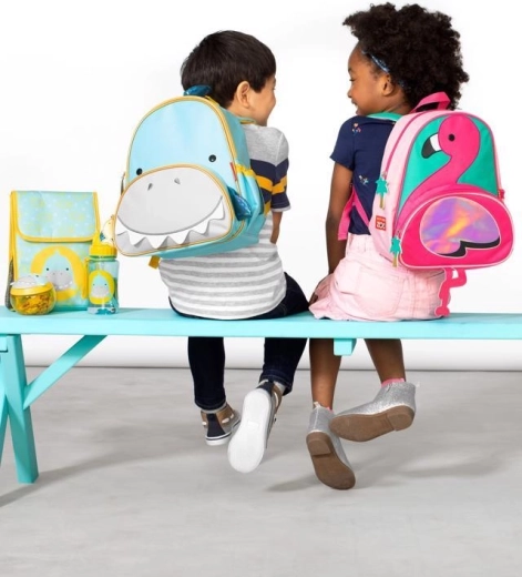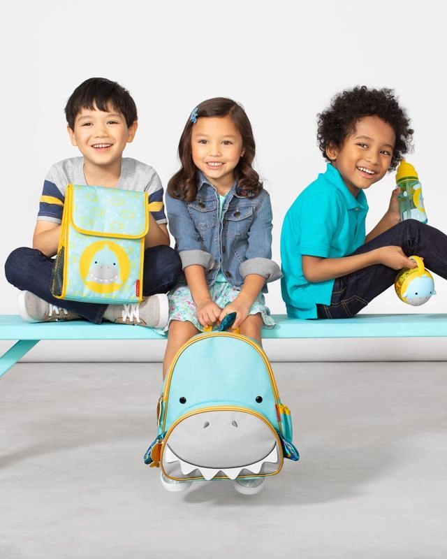 Schattige Skip Hop kinderrugzak in de vorm van een haai, ideaal voor de peuterspeelzaal en uitstapjes. Biedt een ruim hoofdvak, een voorvak voor snacks met een organizer voor potloden, een zijvak van mesh voor een fles en gevoerde, verstelbare schouderbanden voor comfortabel dragen. Vrij van BPA en ftalaten, eenvoudig te onderhouden en voldoet aan de veiligheidsnormen.
