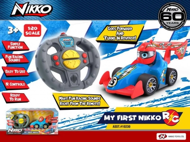 Maak de kleinste coureurs vertrouwd met hun eerste op afstand bestuurbare autootje: My First Nikko. Met de eenvoudige controller kunnen ze meteen van start, achteruit draaien en leuke race- en piepgeluiden afspelen. Zachte randen en hoogwaardige afwerking zorgen voor veilig speelplezier, batterijen zijn inbegrepen en het speelgoed is geschikt vanaf 2 jaar.