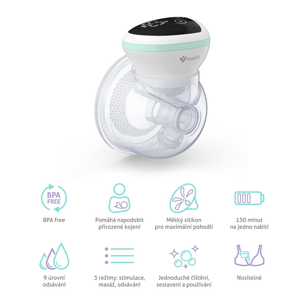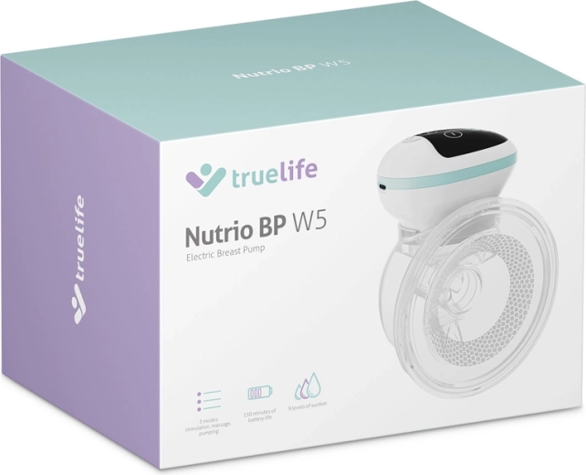 De TrueLife Nutrio BP W5 is een moderne elektrische handsfree borstkolf die de lactatie op natuurlijke wijze ondersteunt. Drie slimme modi – stimulatie om de melkstroom op gang te brengen, een zachte massage voor ontspanning en effectief afkolven dat het zuigen van de baby nabootst – bieden maximaal comfort. Elke modus stem je eenvoudig af dankzij negen intensiteitsniveaus.