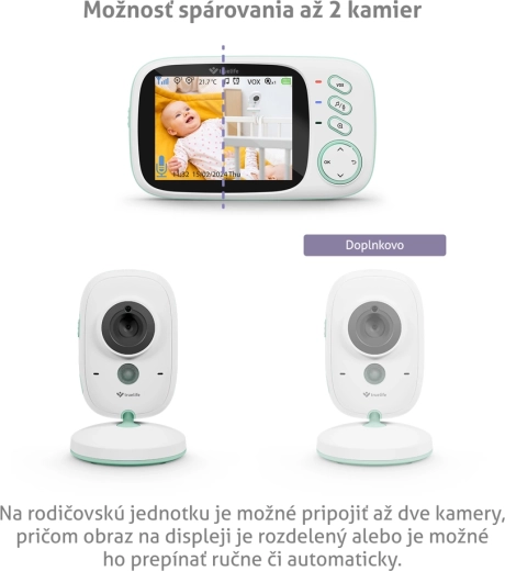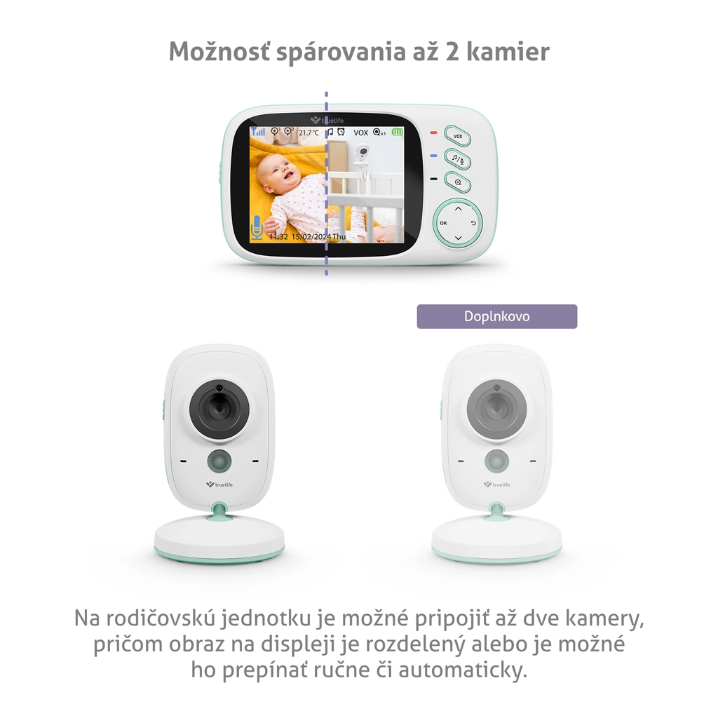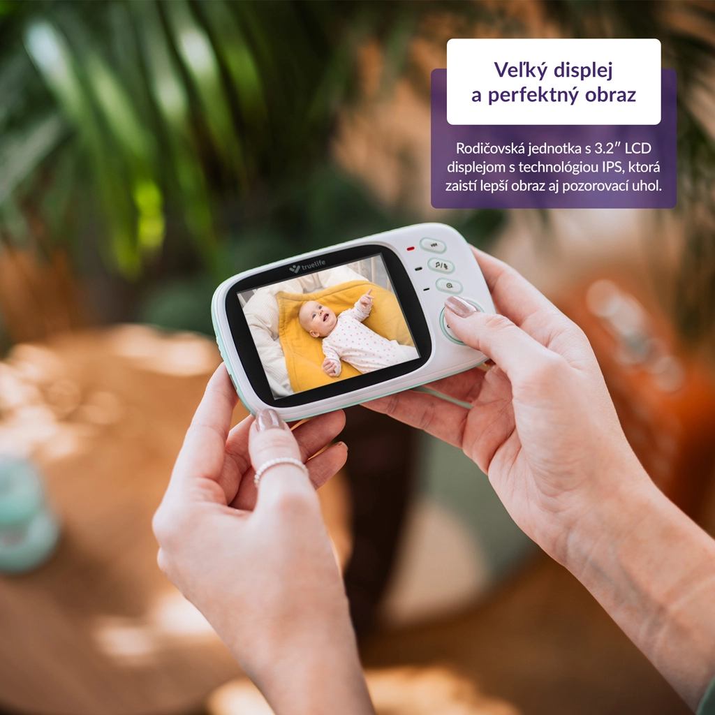 De TrueLife NannyCam H32 Pro is een betrouwbare digitale videobabyfoon waarmee je je kind in de gaten houdt met een kristalhelder beeld op het 3,2″ IPS-scherm. Wanneer het donker wordt, schakelt het automatische nachtzicht in met een bereik tot 5 m. Dankzij de tweerichtingscommunicatie kun je je baby geruststellen met je eigen stem of een van de 8 voorgeprogrammeerde slaapliedjes afspelen.