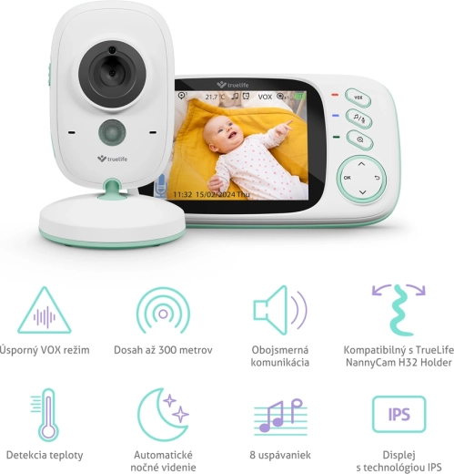 Houd je baby altijd in het zicht met de TrueLife NannyCam H32 Pro videobabyfoon. Hij biedt een helder 3,2″ IPS-scherm, automatisch nachtzicht, tweerichtingscommunicatie en een VOX-modus voor batterijbesparing. Dankzij het bereik tot 300 m, de kamertemperatuurmeting en 8 slaapliedjes heb je dag en nacht rust en overzicht.
