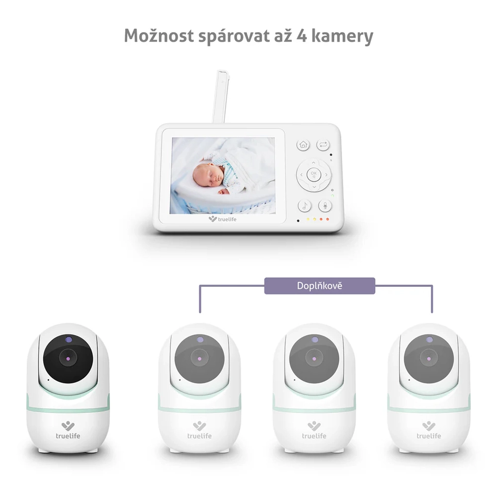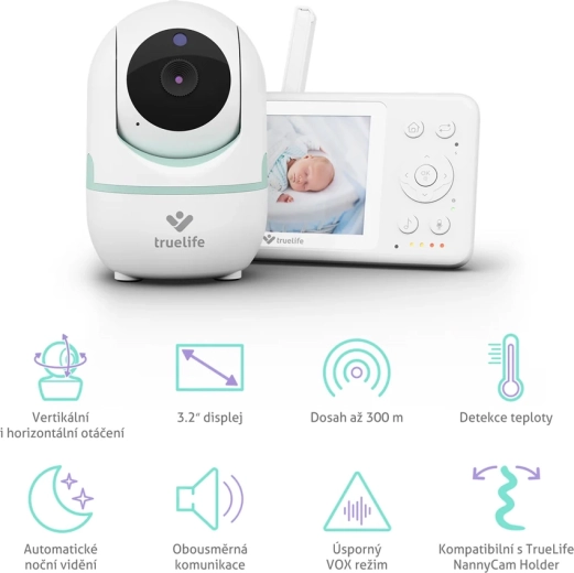 Digitale babyfoon met camera TRUE-LIFE NannyCam R4i biedt 360° dekking, tweerichtingscommunicatie en een 3,2" LCD‑scherm met een bereik tot 300 m. Automatische nachtzicht, VOX‑spaarstand, temperatuurdetectie, voedingsherinneringen en slaapliedjes zorgen voor gerust toezicht op je baby, dag en nacht. Je kunt tot 4 camera’s aansluiten; wandmontage en compatibiliteit met de TrueLife NannyCam Holder ontbreken niet.