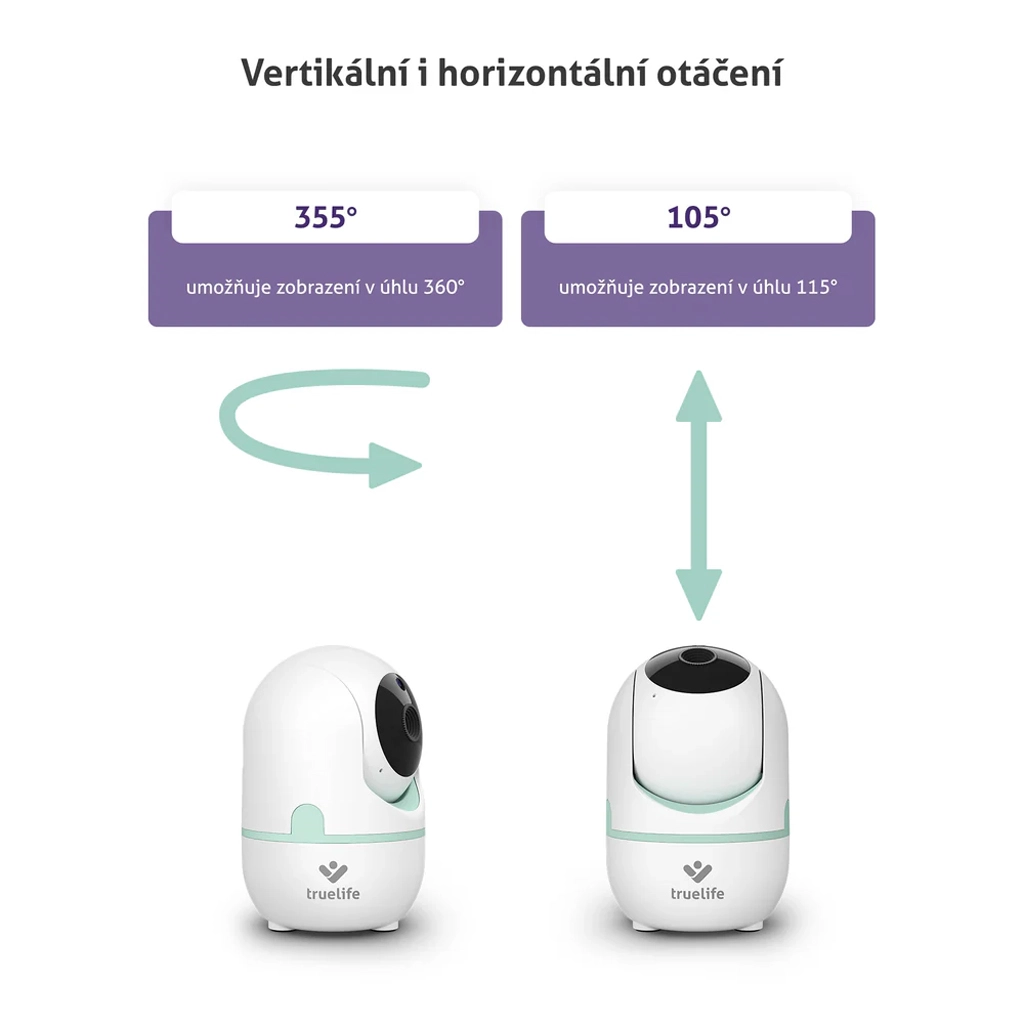 Blijf gerust, ook als je niet in de kamer bent. De TrueLife NannyCam R4i biedt horizontaal en verticaal draaien van de camera voor volledig zicht in elke hoek. Op het 3,2" IPS LCD scherm zie je een helder beeld, ook in het donker dankzij automatisch nachtzicht. Tweerichtingscommunicatie maakt het mogelijk je baby direct te sussen met je stem of een van de 5 voorgeïnstalleerde slaapliedjes te kiezen.