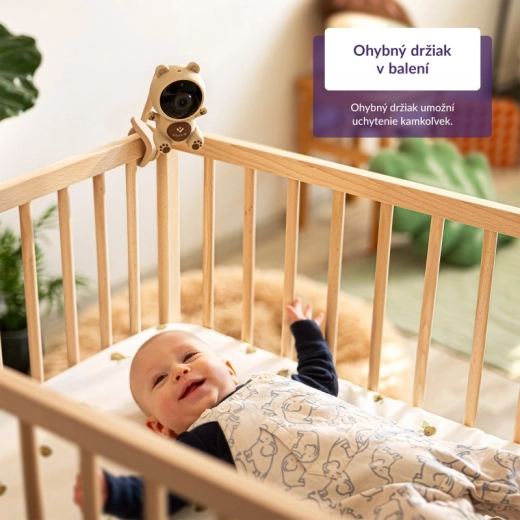 De babyfoon werkt via de veilige TrueLife Smart app (NL/CS interface) met vijflaags beveiliging en AES‑versleuteling. Je krijgt onbeperkt bereik waar je ook bent, de mogelijkheid om tot 16 camera’s te koppelen en een onbeperkt aantal gebruikers. Natuurlijk kun je foto’s en video’s opnemen op een microSD‑kaart. De flexibele, buigzame houder laat je de babyfoon bijna overal bevestigen – bijvoorbeeld aan het ledikantframe.