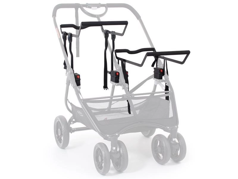 Stel de perfecte reiscombinatie samen voor een tweeling of voor broertjes/zusjes met de universele adapter A voor de VALCO BABY Snap Duo Ultra kinderwagen. De hoofdadapter wordt hoger op het frame geplaatst en kan dankzij de unieke oplossing veilig twee autostoeltjes tegelijk dragen. Snel plaatsen en losmaken vanaf beide zijden van de kinderwagen bespaart tijd en maakt dagelijkse verplaatsingen aangenamer.