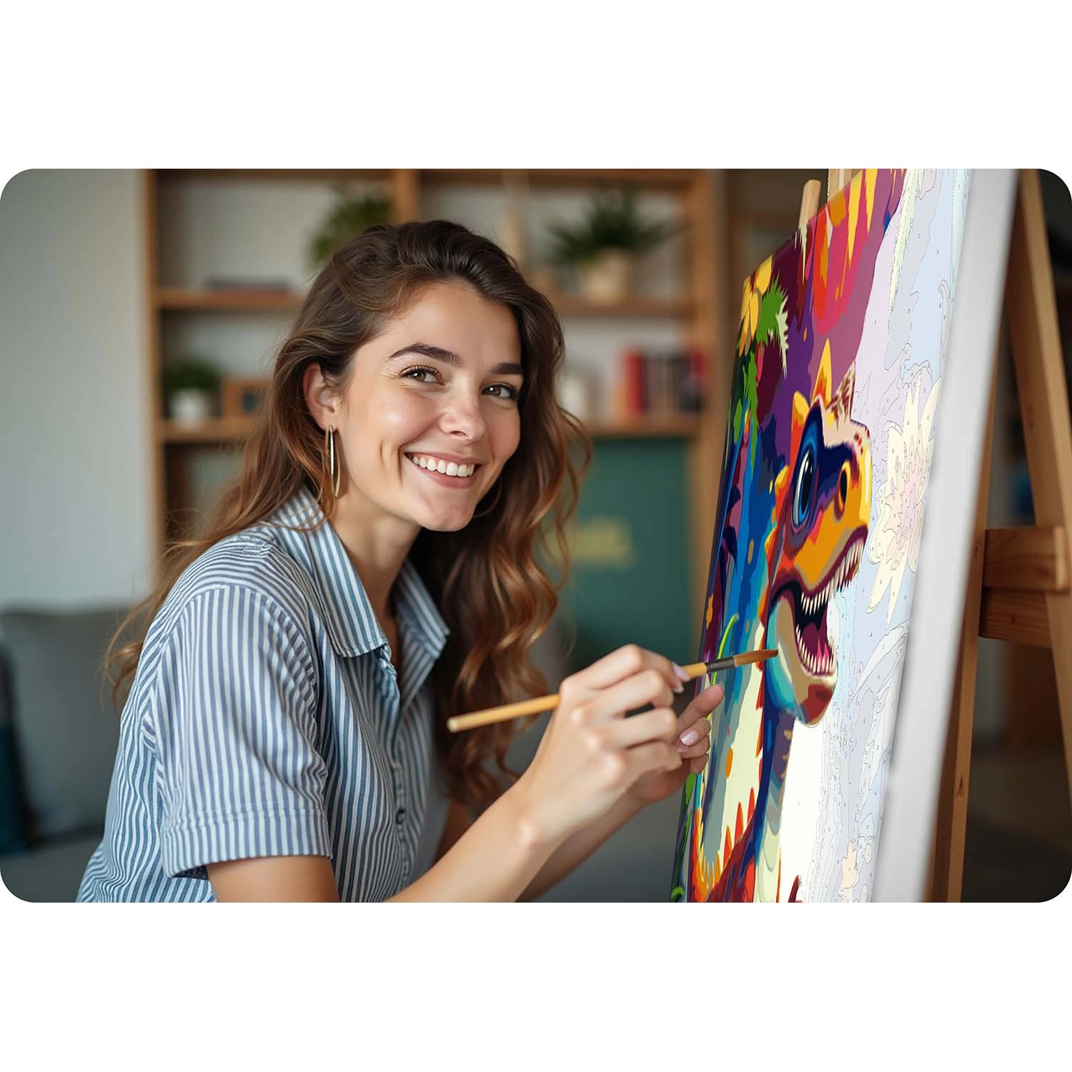 De kant-en-klare acrylverven hebben uitstekende dekking en een prettige consistentie – verdunnen is niet nodig. Drie penselen (voor grote vlakken, details en precieze lijnen) bieden maximale controle over elke penseelstreek. Het canvas is al op een stevig houten spieraam gespannen, zodat je na het schilderen alleen de haakjes hoeft te bevestigen en het kunstwerk meteen kunt ophangen.