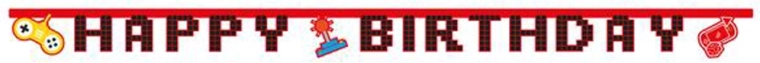 Deze verjaardagslinger met game-thema is een perfecte keuze voor elke liefhebber van videogames. Dankzij de lengte van 2 meter versier je eenvoudig een tafel, muur of fotobooth en benadruk je het thema van je feest.