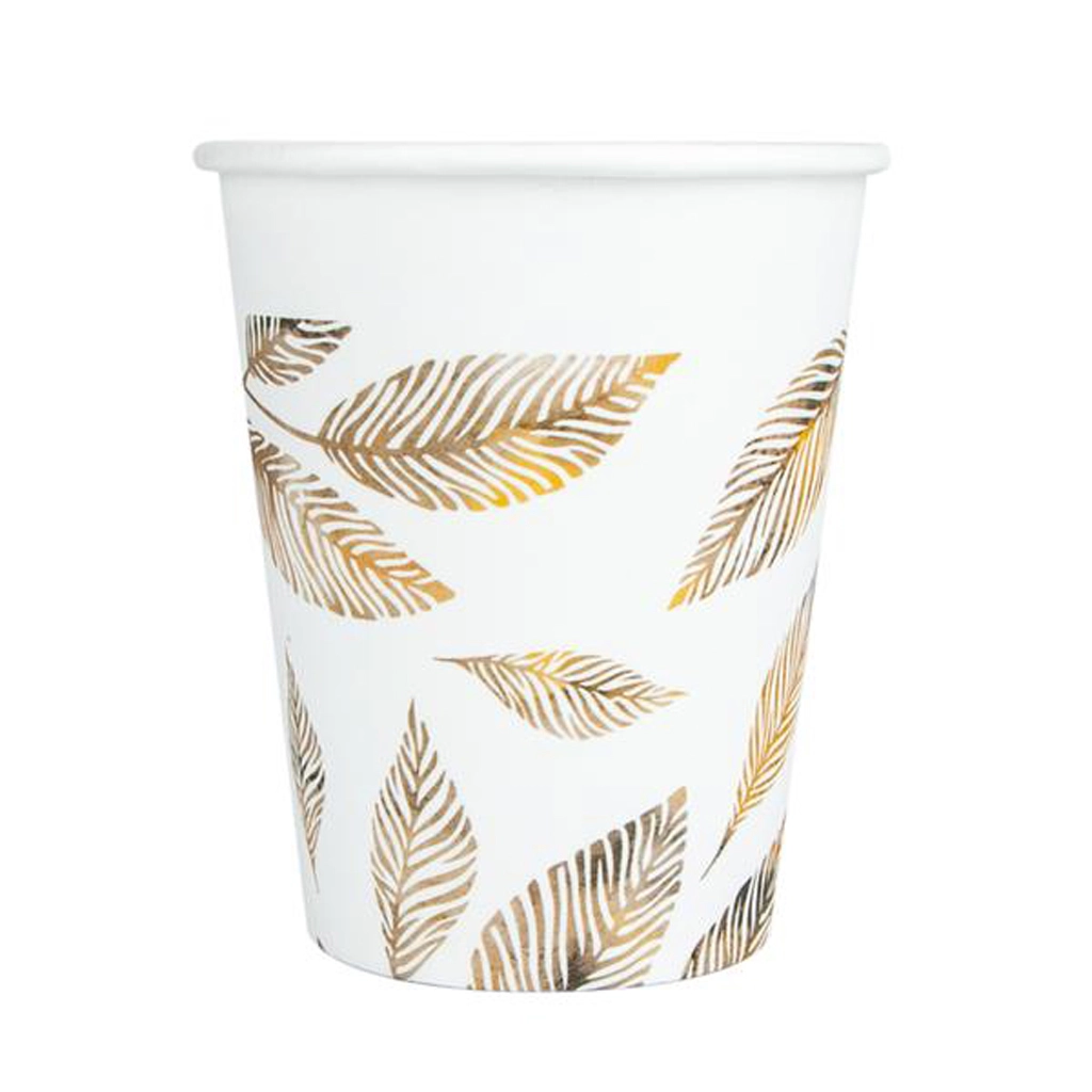Elegante papieren bekers met een subtiel takjesmotief in het grijs, ideaal voor feestjes, bruiloften en dagelijks gebruik. Ze bieden een praktische inhoud van 200 ml, zijn licht en stevig en passen perfect bij een moderne tafelsetting. De verpakking bevat 8 stuks.