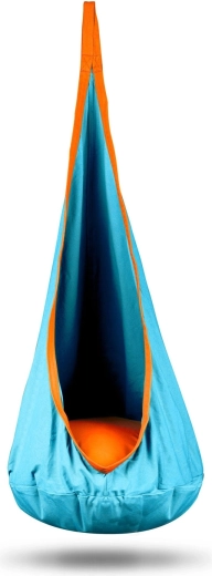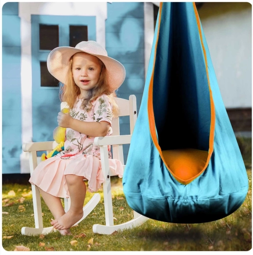 Creëer voor kinderen een knusse plek met deze turquoise hangende coconschommel. Biedt een comfortabele plek om te ontspannen, zacht schommelen en plezier in de kinderkamer, op het terras of in de tuin. Inclusief zacht kussen, stevige naden en duurzaam, wasbaar materiaal met een draagvermogen tot 80 kg.