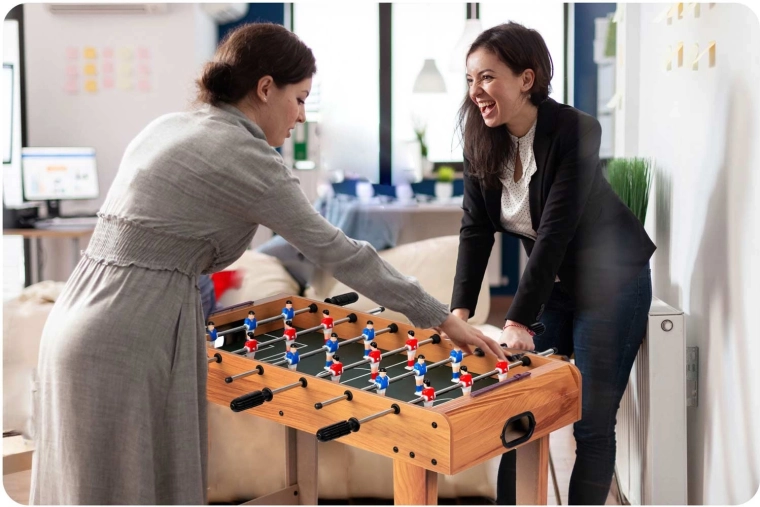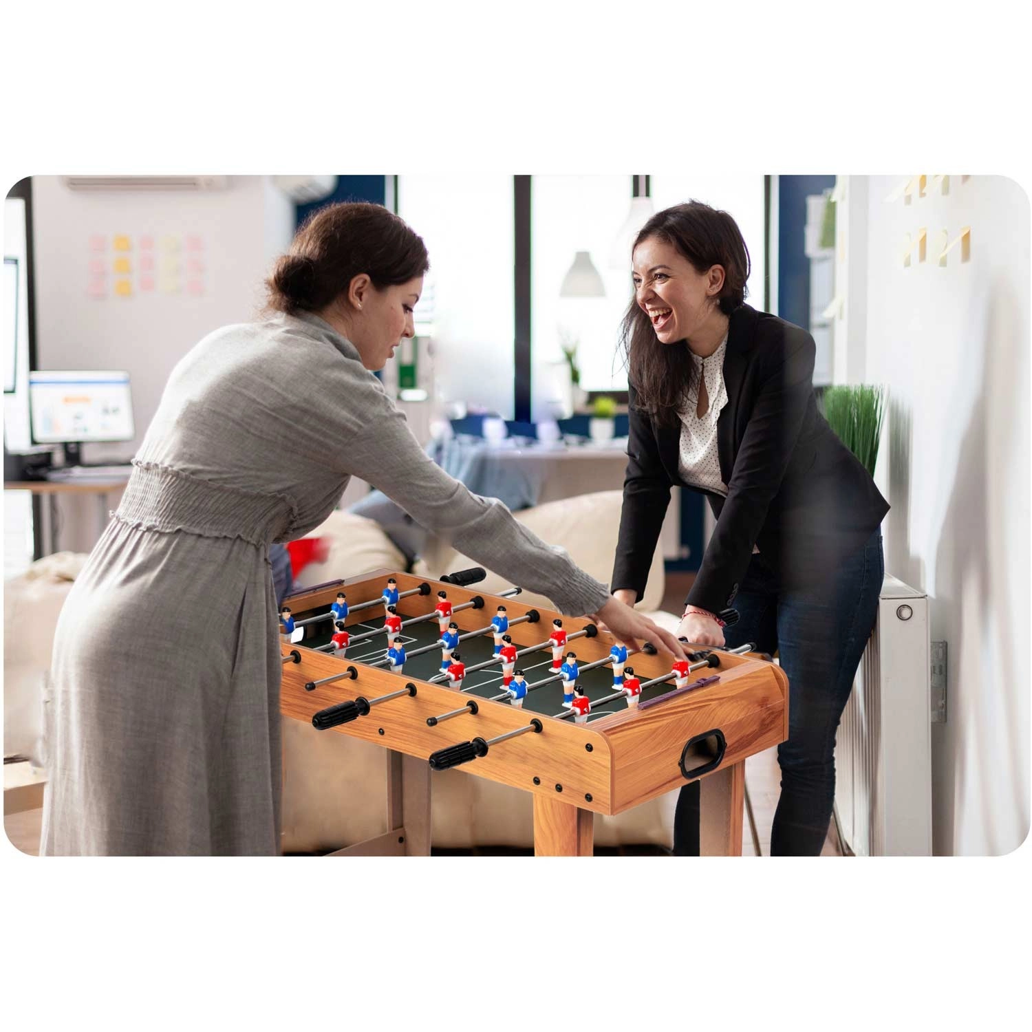 Een stevig frame en robuuste poten zorgen voor stabiliteit, zelfs bij intensieve duels. Het spel verloopt soepel en veilig dankzij de rubberen einddoppen op de stangen.