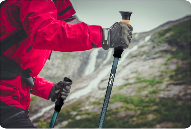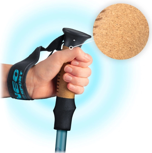 Ademende kurk houdt de handpalmen droog en comfortabel, terwijl de verstelbare polsriem de grip verlicht en vermoeidheid vermindert tijdens lange tochten.