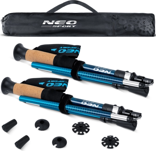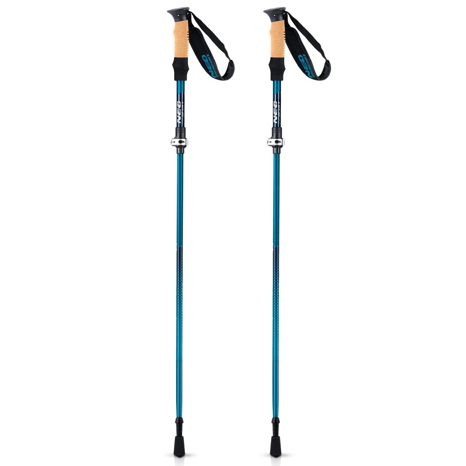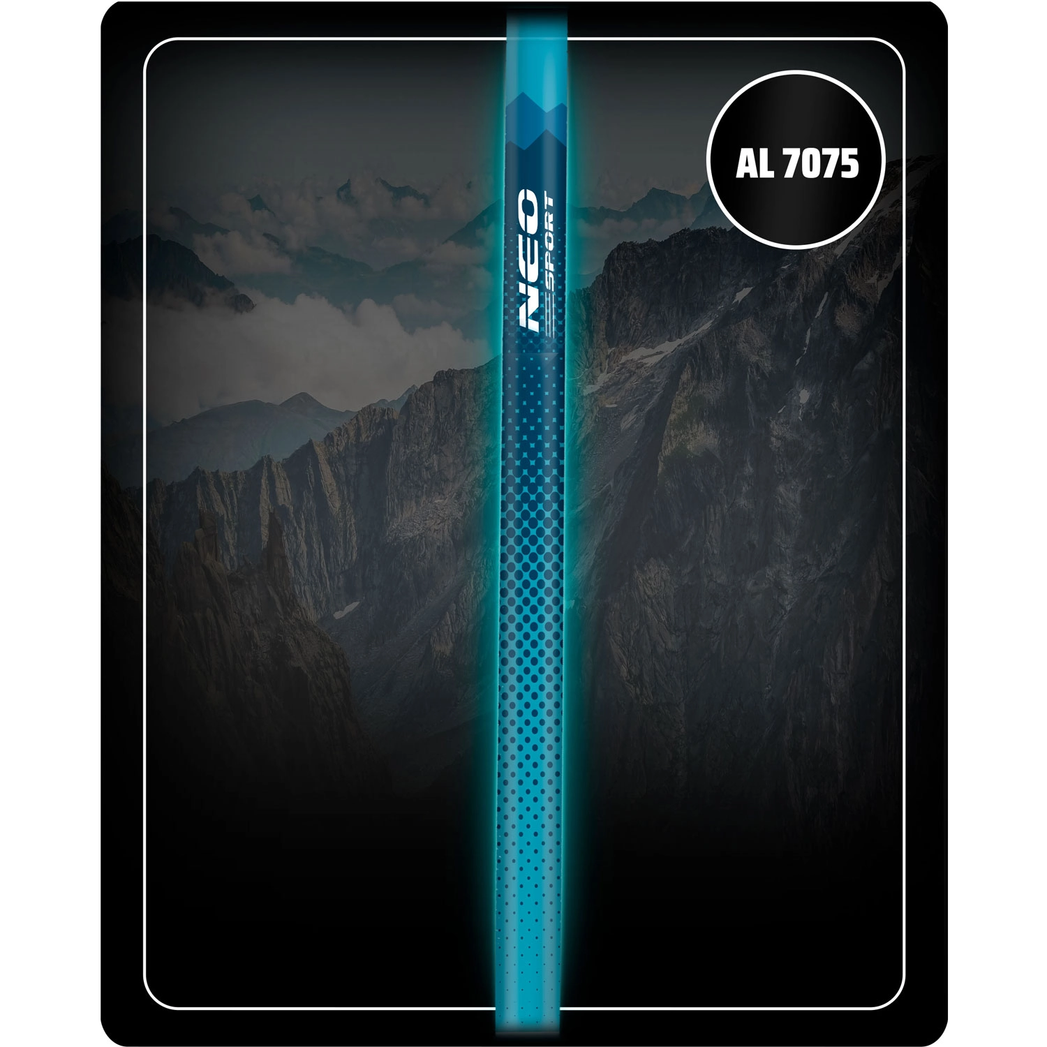 De Neo-Sport trekkingstokken zijn een betrouwbare steun op bergpaden, bosachtige trailpassages en stedelijke ondergronden. De duurzame aluminiumlegering AL 7075 zorgt voor hoge sterkte bij een laag gewicht (slechts 355 g per stuk), terwijl de ergonomische kurken handgreep en de zachte verstelbare polsriem comfort bieden, zelfs tijdens tochten van een hele dag.