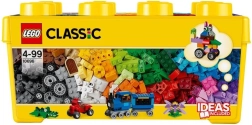 De LEGO Classic Middelgrote Creatieve Doos biedt eindeloze creatieve bouwmogelijkheden met stenen in 35 verschillende kleuren. Bevat ook ramen, ogen en veel wielen, wat de speelervaring verrijkt.