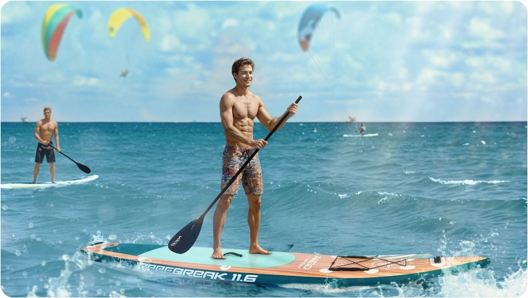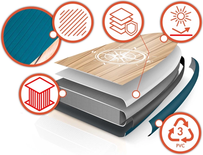Dubbel geweven Drop Stitch, drie lagen PVC en versterkte naden zorgen voor uitstekende stijfheid, duurzaamheid en een laag gewicht. Ideaal voor langere tochten en dagelijks gebruik.