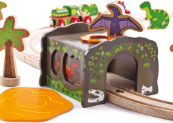 Breng de wereld van je treinbaan tot leven met een avontuur uit de prehistorie. De T. rex-dinosaurus-tunnel met indrukwekkende illustraties trekt kinderen mee in fantasierijk spel – rijd door de “gevaarlijke” grot, ontwijk de bewakende wezens en verzin je eigen verhalen.