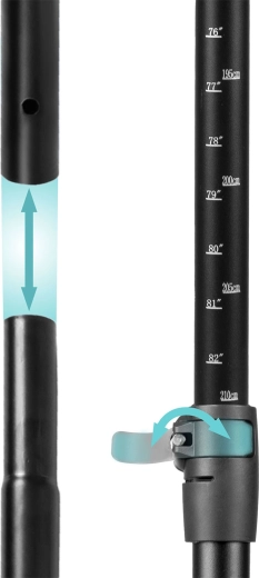 Meetmarkeringen en een snelspanklem maken nauwkeurige lengte-instelling tot 230 cm mogelijk voor comfortabel bereik en efficiënte slag.