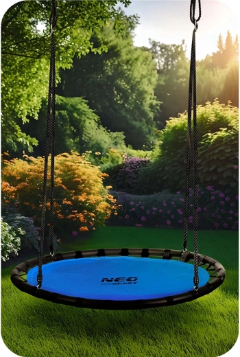 De schommelring type ooievaarsnest NEO-SPORT Swingo is ideaal voor de tuin, het terras en de speeltuin. De brede en stabiele zitting van Oxford 600D is waterbestendig en gemakkelijk te reinigen, dus perfect voor dagelijks buitengebruik. Het robuuste stalen frame met PE-schuimvulling en de sterke polyestertouwen zorgen voor hoge stabiliteit en veiligheid tijdens het schommelen.