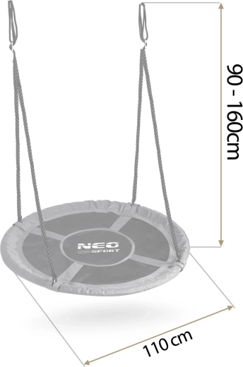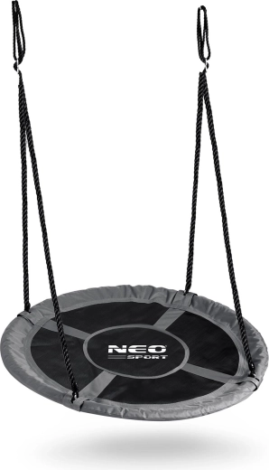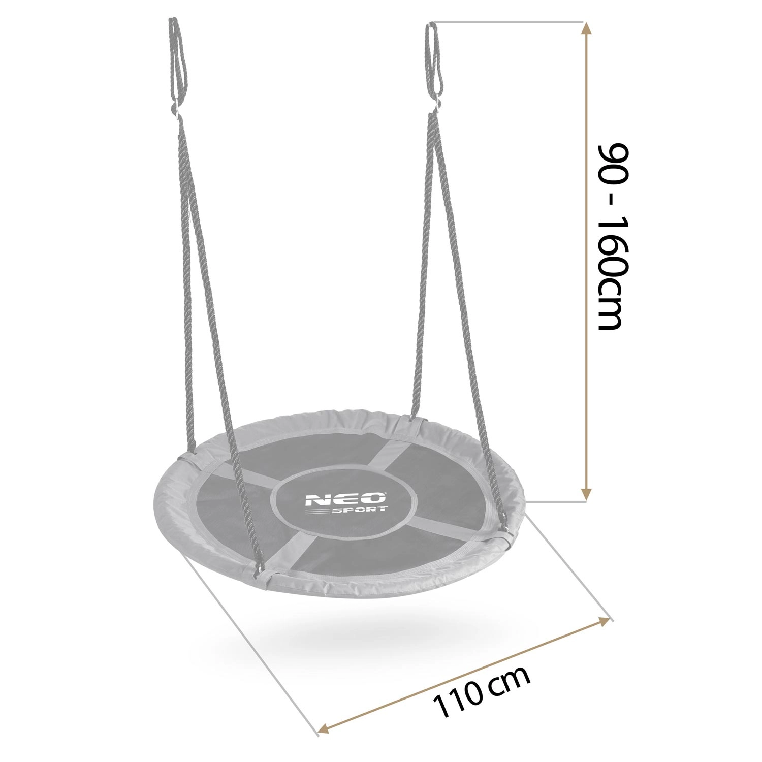 De NEO-SPORT Swingo nestschommel van 110 cm is ideaal voor in de tuin of op de binnenplaats. De brede en comfortabele zitting van duurzame, waterbestendige Oxford 600D-stof is makkelijk schoon te houden en voelt prettig aan. De stalen constructie met zachte PE-schuimlaag en de stevige gevlochten touwen bieden stabiliteit en veiligheid voor zowel kinderen als volwassenen.